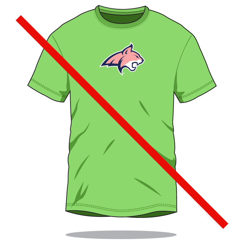 The examples below show some proper and improper applications of branding on merchandise and apparel.