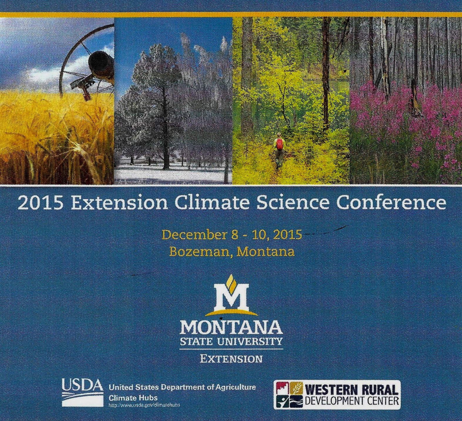 A three-day conference featuring presentations on climate science basics covering such questions as why does climate change; past climate data and current climate trends for Montana and the region; weather versus climate; and periodic fluctuations in climate versus global climate change. Sessions will also featured hearing from Montana stakeholders from Extension program areas (agriculture and natural resources, family and consumer sciences, community development, and youth development (4-H). and tools and resources for communicating climate science.