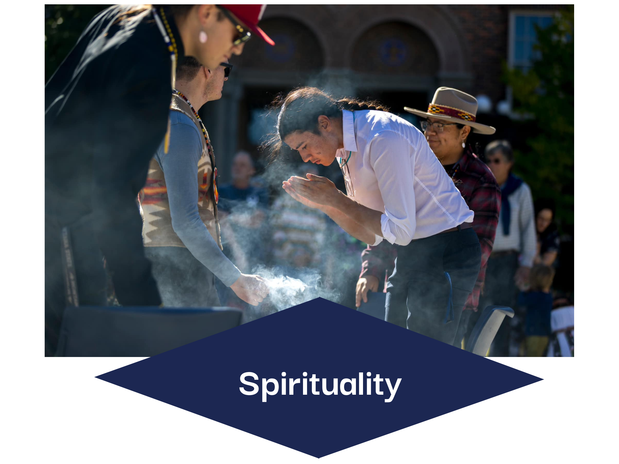 Image of the Spirituality prong of the Cultural Values model, showing individuals during the practice of smudging.