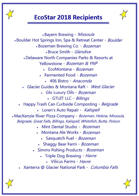 - EcoStars are honored by the Governor at an awards ceremony at the Capitol in Helena.